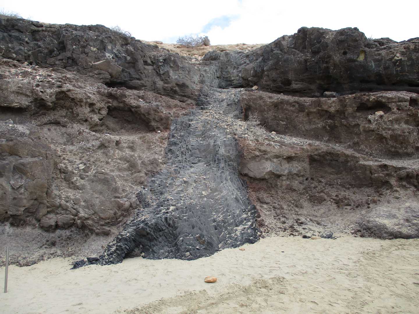 Ein versteinerte Lavafluss am Nachbarstrand (Richtung Süden)