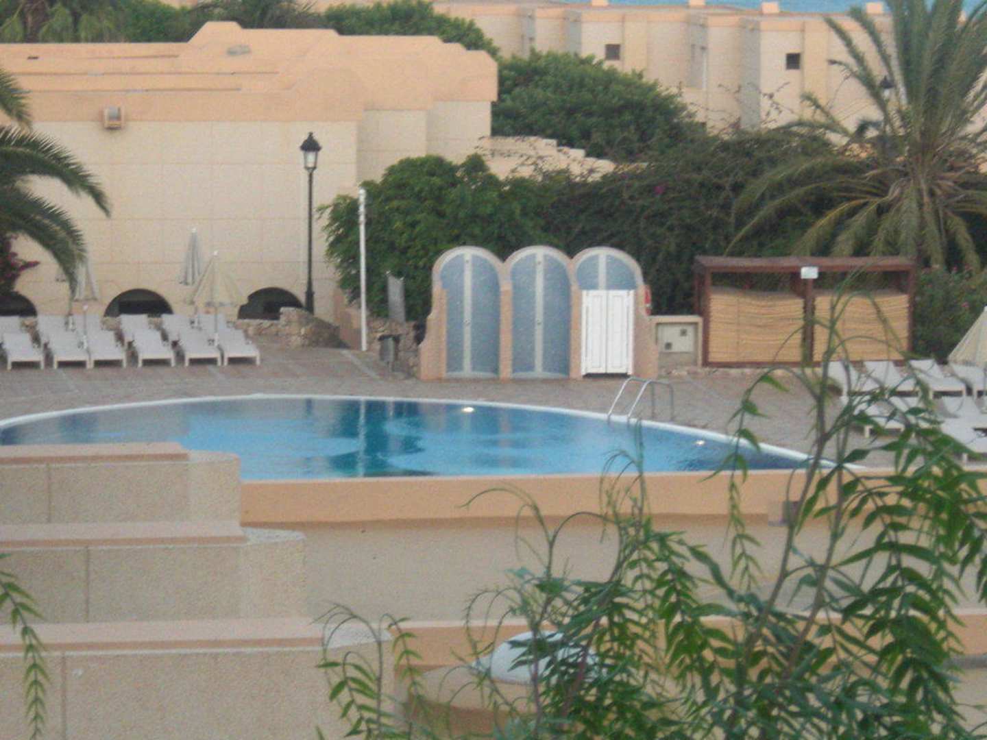 Pool vom Zimmer des Crystal Beach aus
