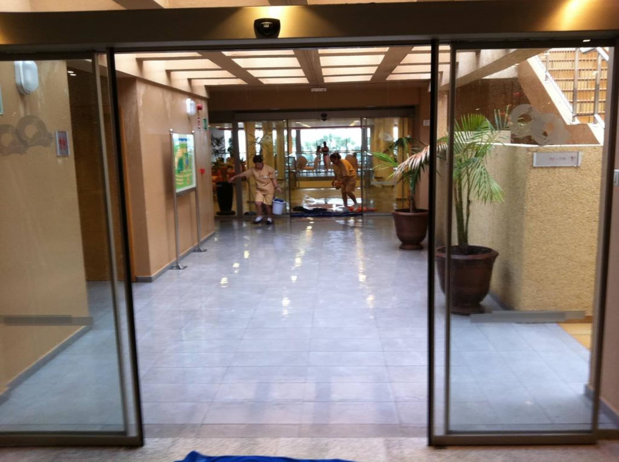Wenn es regnet, dann zeigt sich die desaströse Bauweise dieses Hotels. Ein geordneter Ablauf vom Regenwasser ist nicht vorhanden, dadurch erhebliche Rutschgefahr zur hinteren Treppe.