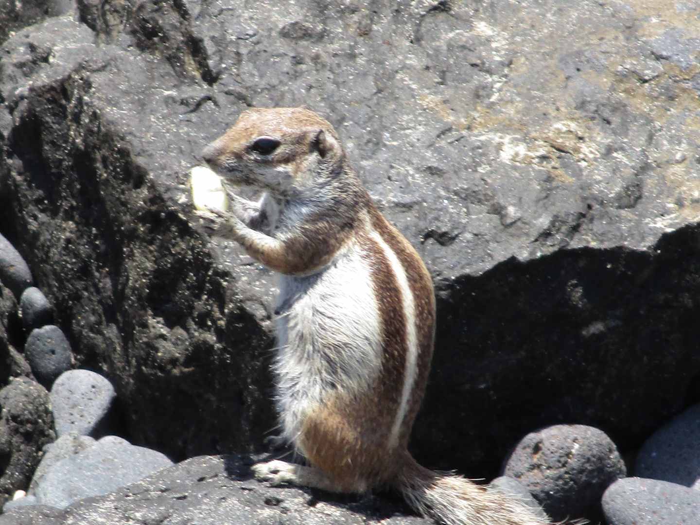 Streifenhörnchen in Felsen am Strand
