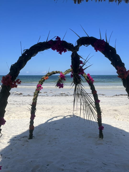 Handgefertigte Dekoration am Strand für das a la carte Abendessen