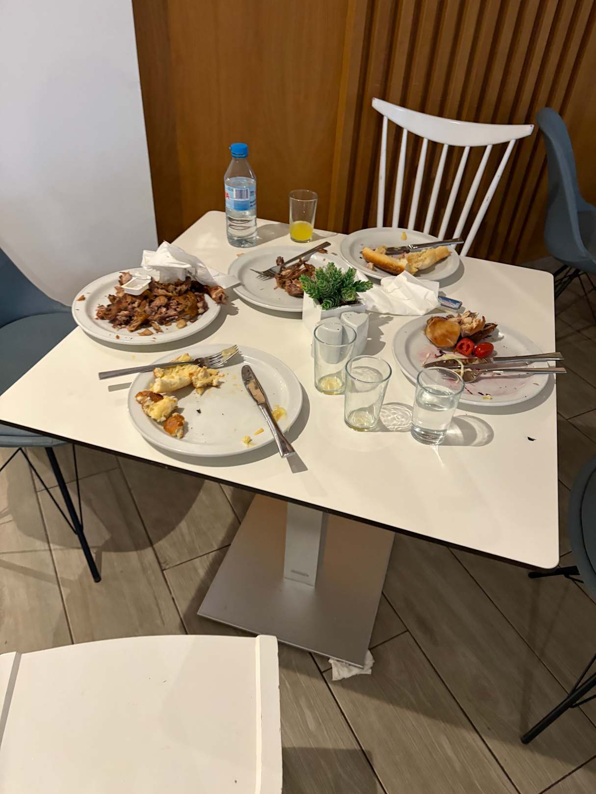 Essen vom Abend morgens noch überall auf den Tischen, einfach zu wenig Personal. Es interessiert niemanden. Beim Frühstück war ein „Verantwortlicher“ Mitarbeiter vor Ort, hab ihn drauf hingewiesen, hat er gesagt die Kellner kommen erst später.