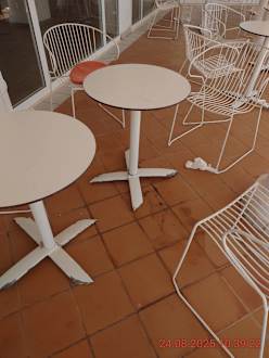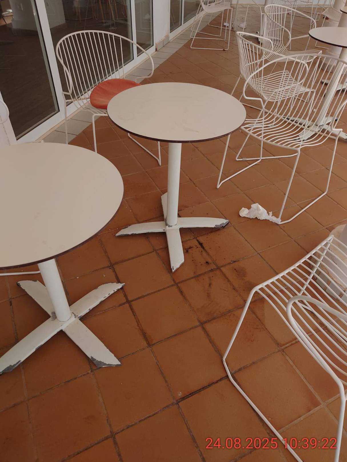 Öl, Flüssigkeiten und schmieriger Boden in vielen Barbereichen und Sitzplätzen. Anstatt abzusperren und gründlich zu reinigen läßt man es so, das Gäste ausrutschen und sich verletzten! Wo ist der Wischmop?