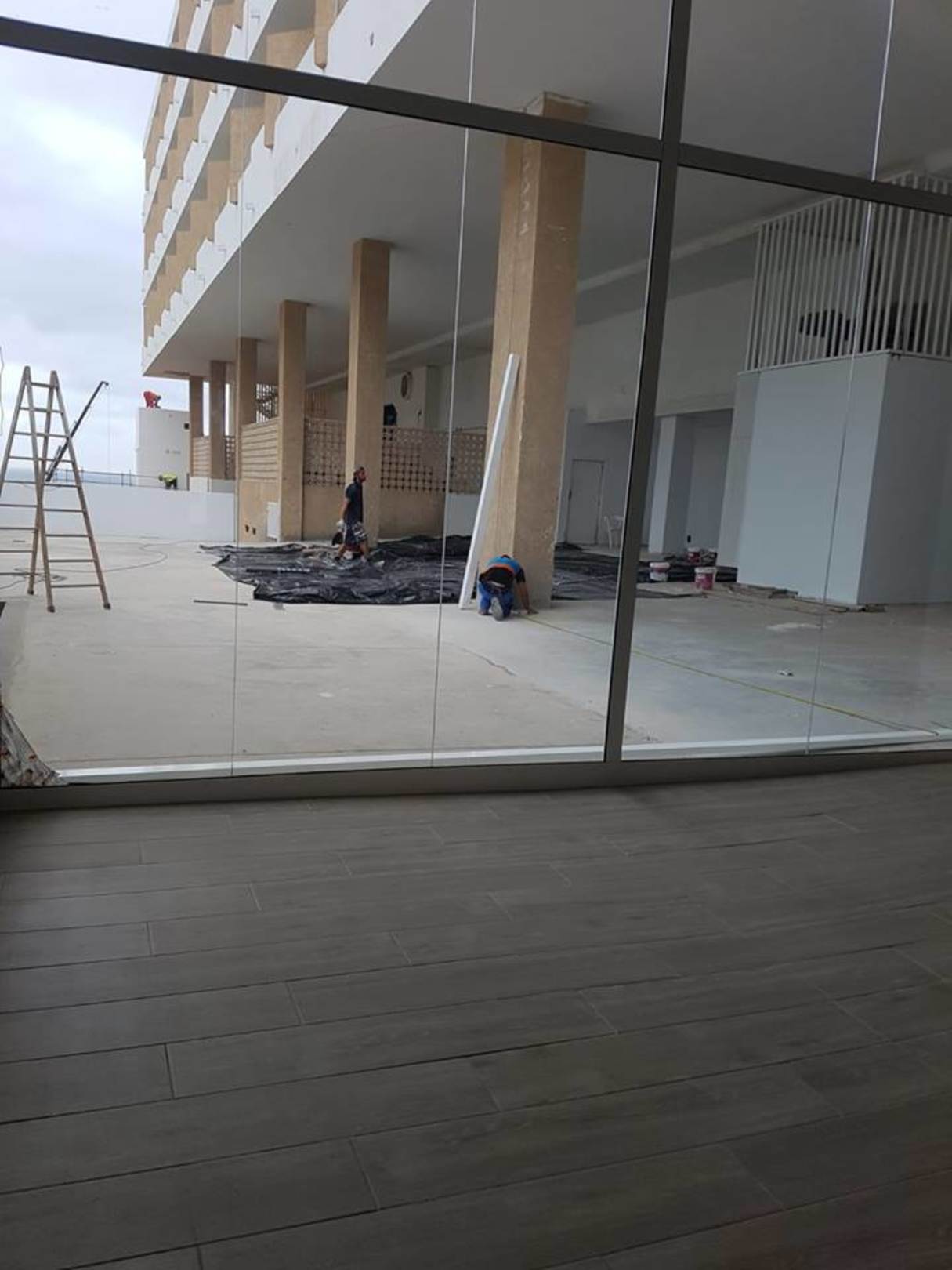 Streicharbeiten ! Ausblick von der Lobby