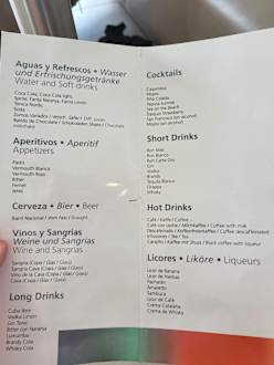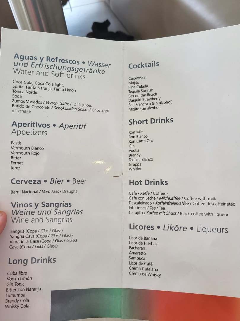 Karte der Getränke, die im All-Inklusive enthalten sind.