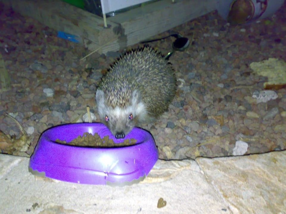 Igel klaut nachts das Katzenfutter