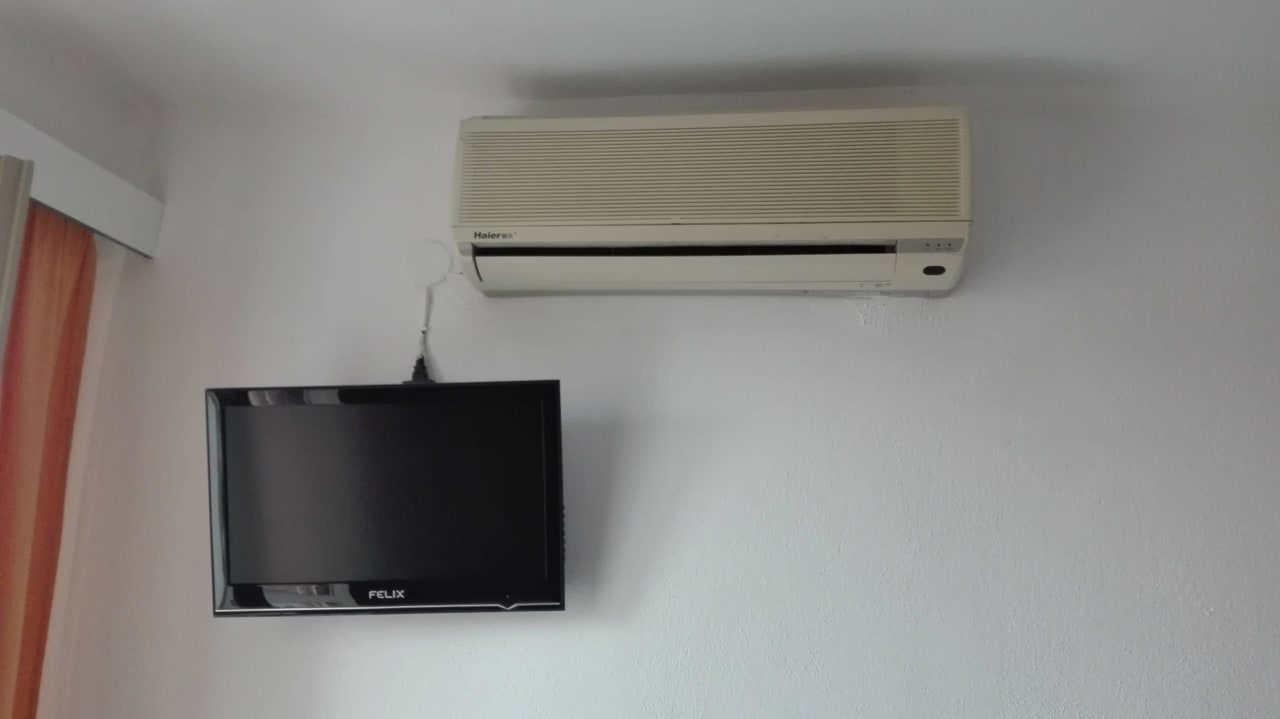 Kleines TV mit Klima direkt zum Bett.
