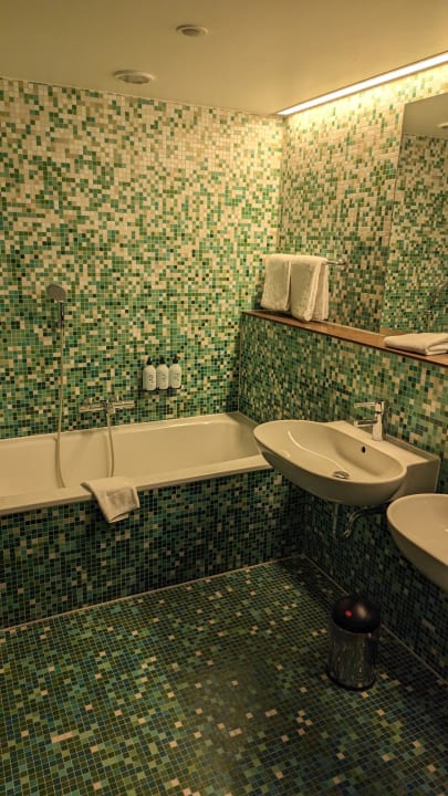 ZimmerDas große Badezimmer in der Presidential Suite mit Badewanne, zwei Waschbecken, Sauna, WC und Dusche