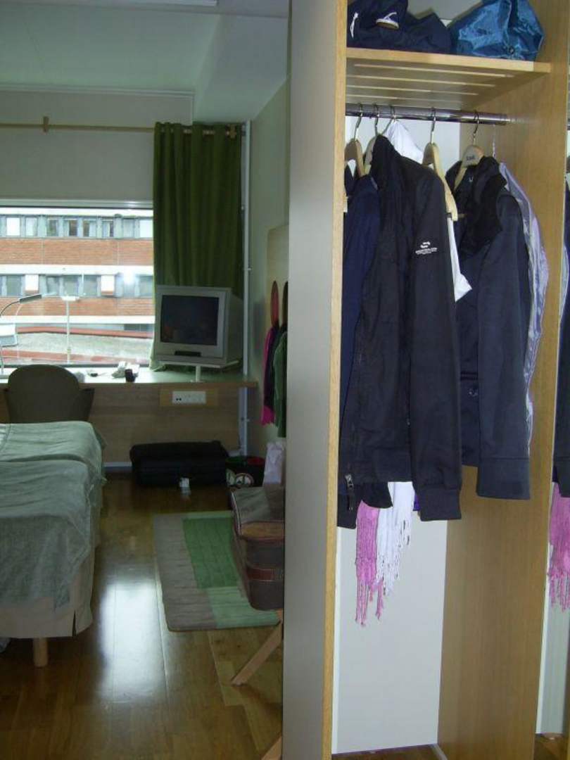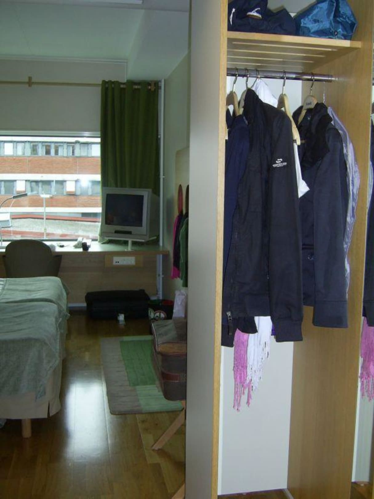 Kleider-'Schrank'Der Schrank ist f. 2 Personen gedacht *lach*, zusätzlich gibt es noch 1! Kofferständer in diesem Doppel!zimmer, auf d. 1 mittlerer Koffer noch Platz findet. Wir haben Fantasie entwickelt u. unsere Sachen z. B. ins Prospekt-Display gehängt; unterm Schreibtisch kann man auch noch einen Koffer lagern. Also, nehmt nicht zuviel mit!