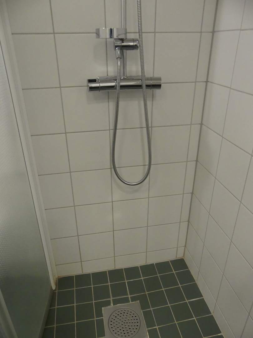 Ebenerdige Duschkabine mit modernen Armaturen