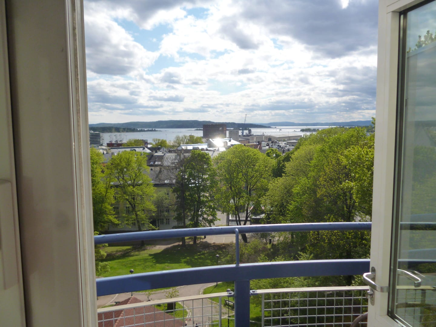 Blick vom Hotelzimmer auf den Fjord