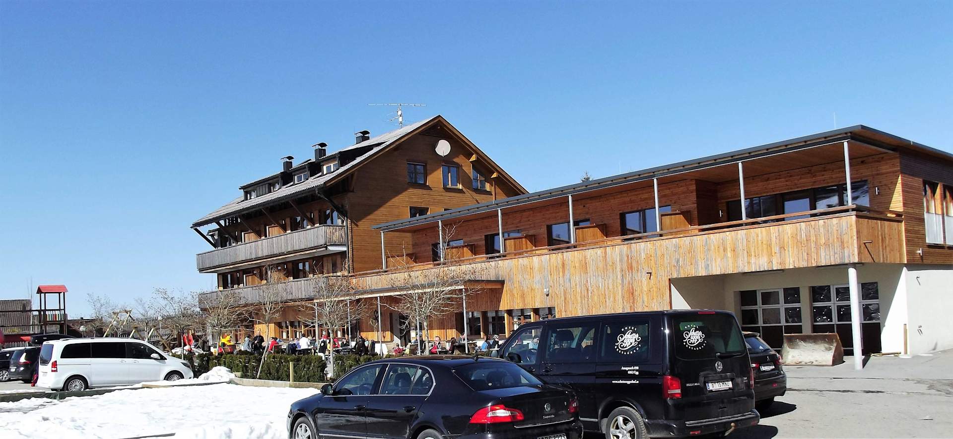 Blick auf den Schetteregger Hof mit Anbau. Ganz rechts die Sauna.
