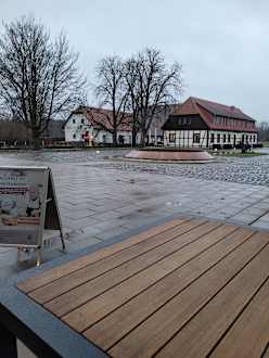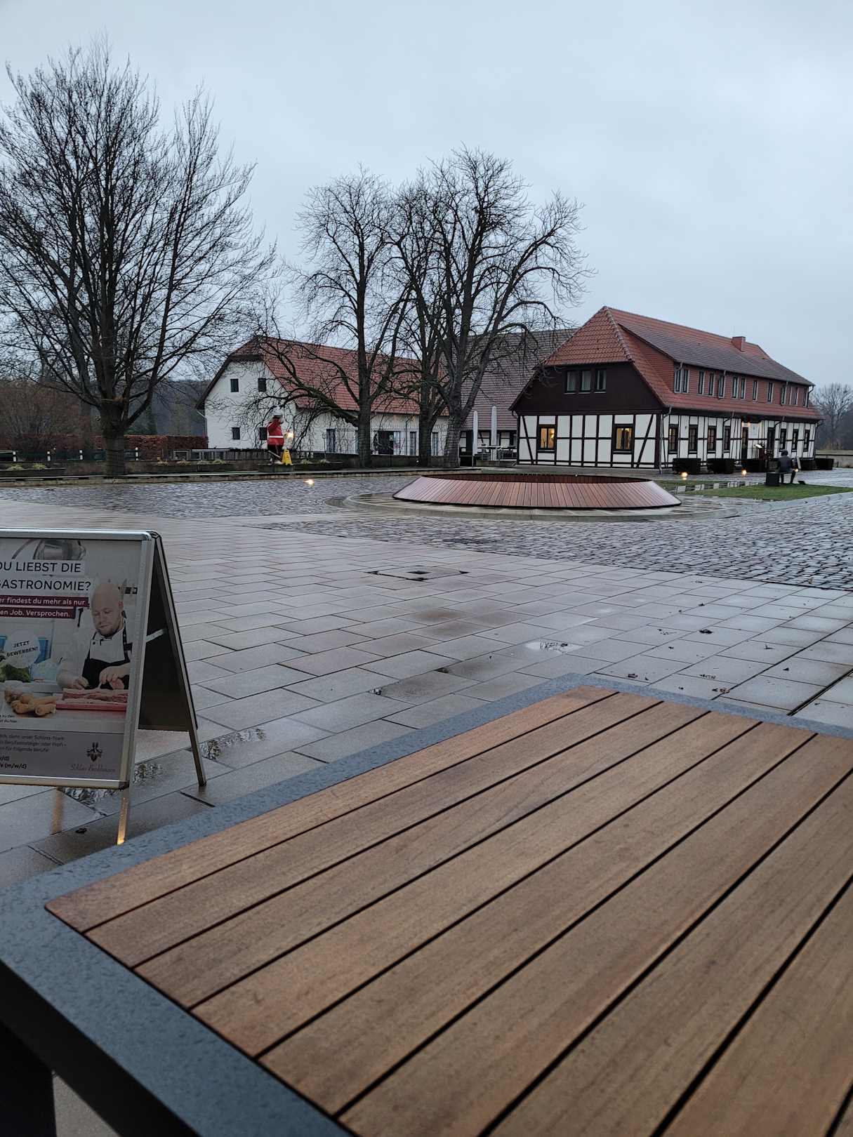 Ausblick aus der kleinen Raucherecke auf dem Hof, direkt neben dem Eingang