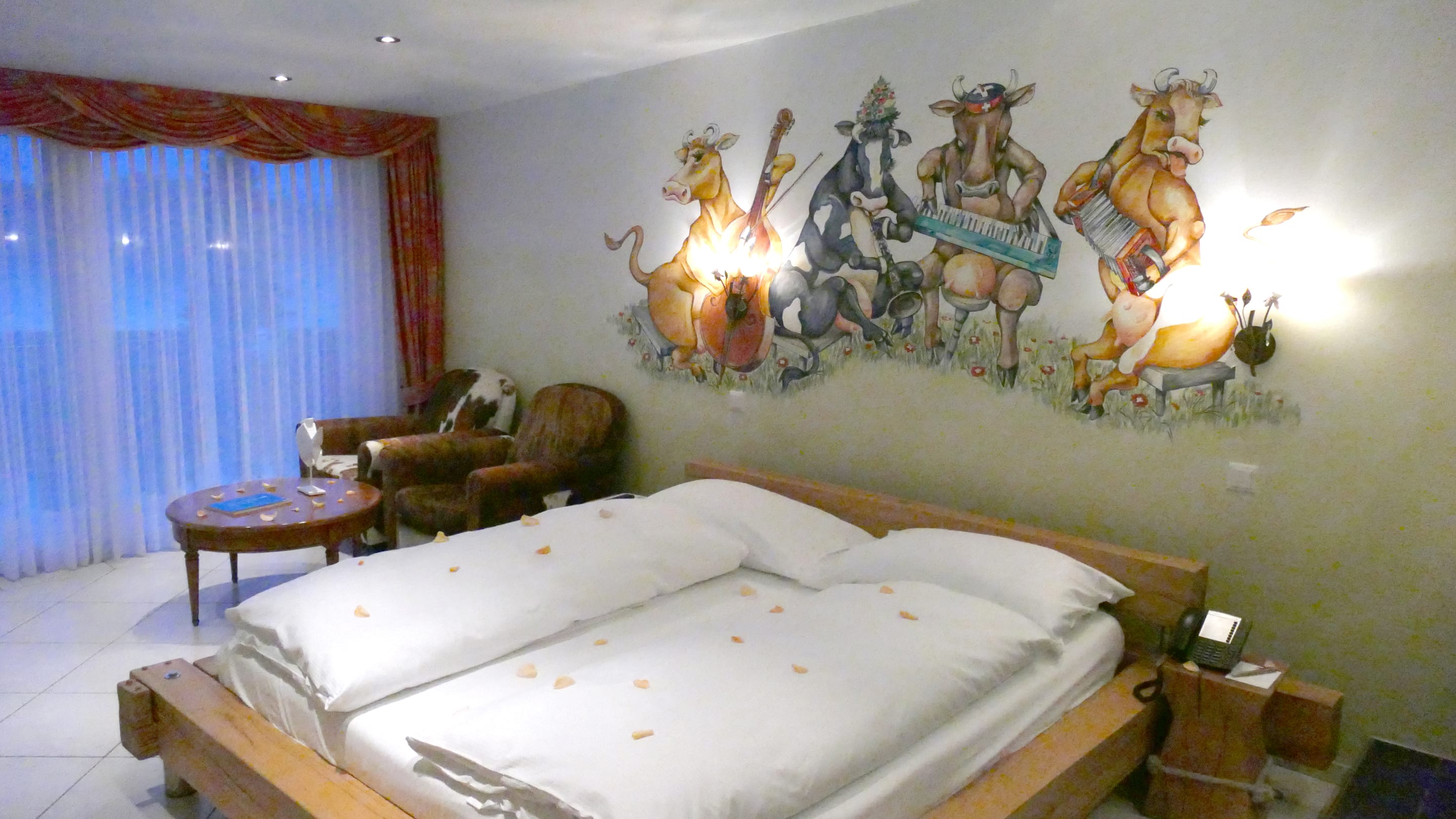 Die Kuhglocken Suite mit bequemen Kuhfell-Sesseln