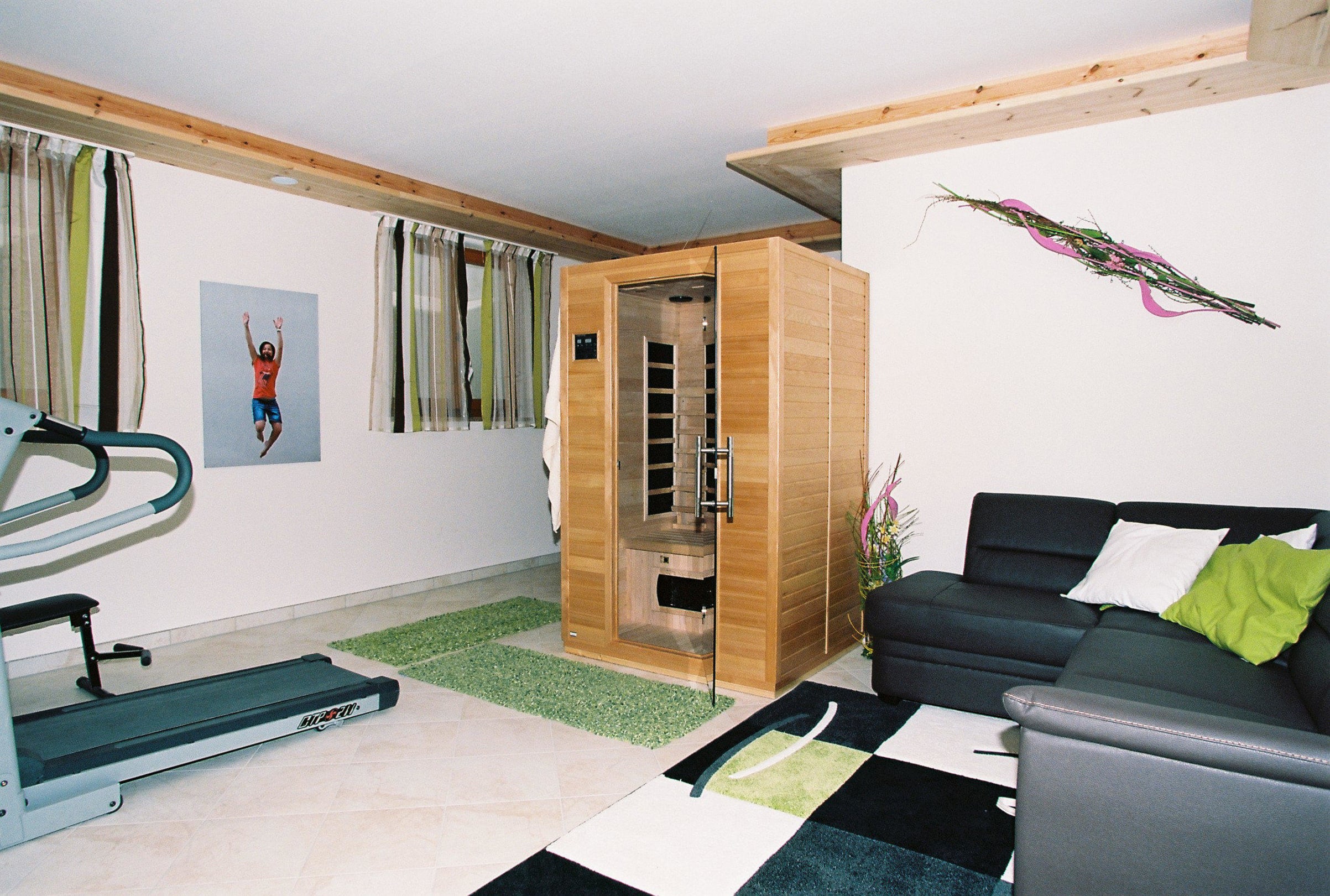 Sauna und kleiner Fitnessbereich
