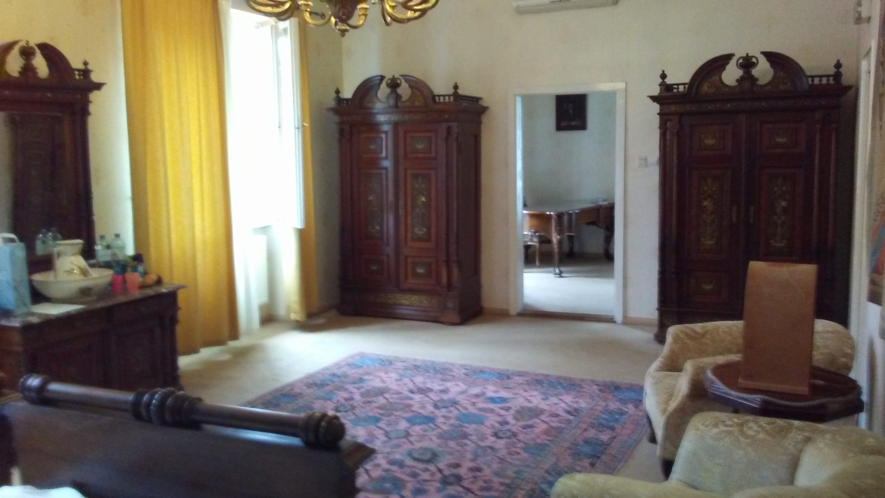 Wohnzimmer mit einheitlicher Möblierung (Kästen, Betten, Waschtisch)