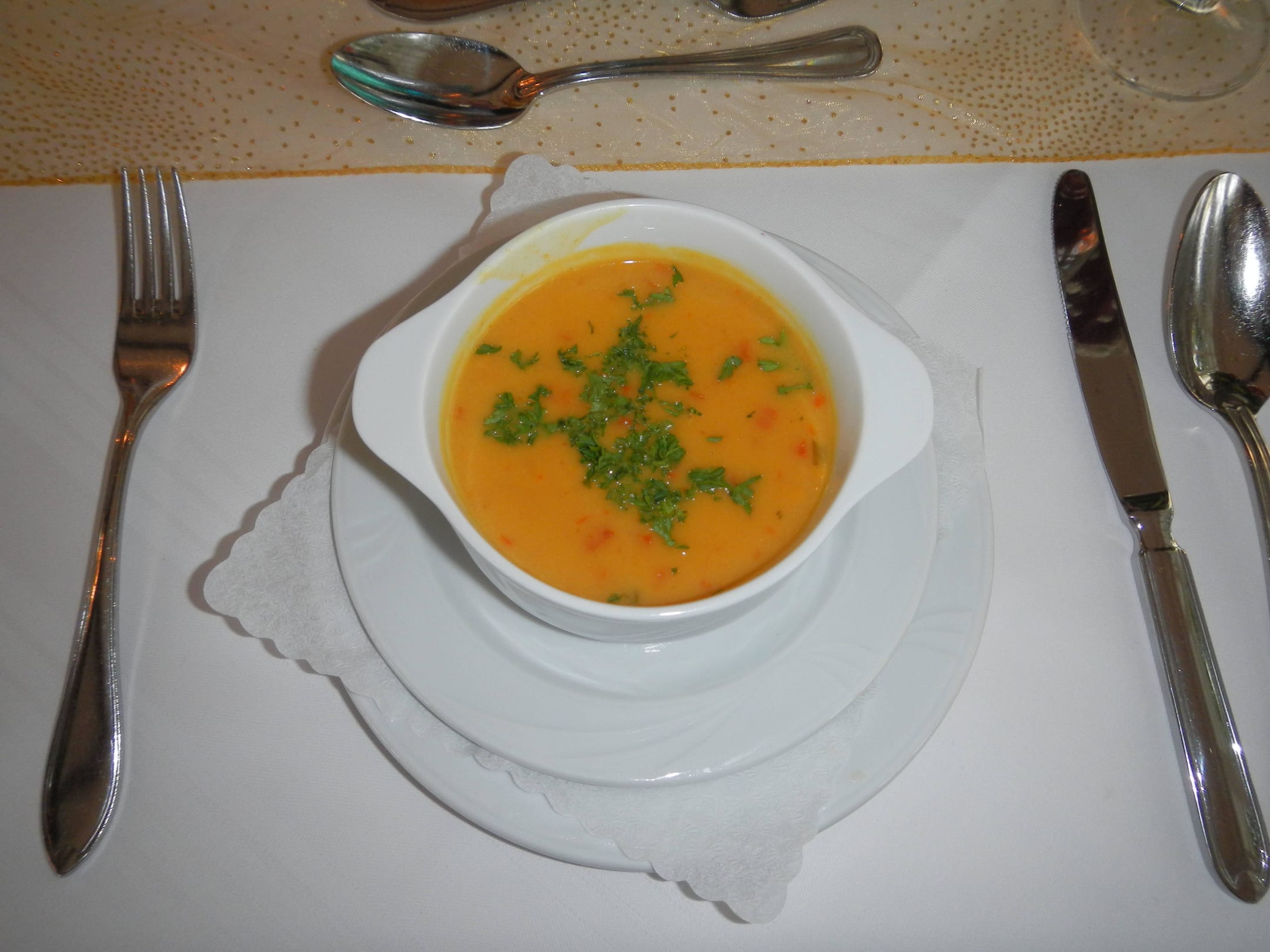 Süppchen, leider ohne Brot oder Baguette serviert