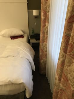 Sehr schmaler Gang Bett und Fenster