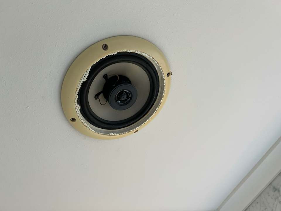 ZimmerEs gibt einen Lautsprecher an der Decke im Badezimmer. Wozu weiß ich nicht aber der Zustand ist so.