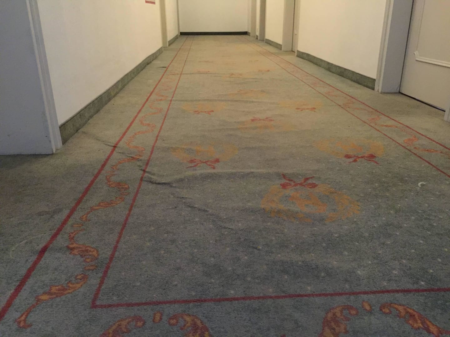 überall auf den Gängen Teppichboden der Falten wirft