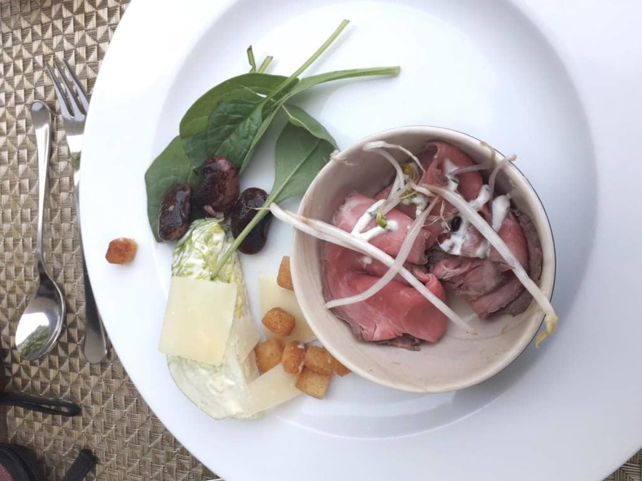 Vorspeise: Roastbeef und Salatherzen.