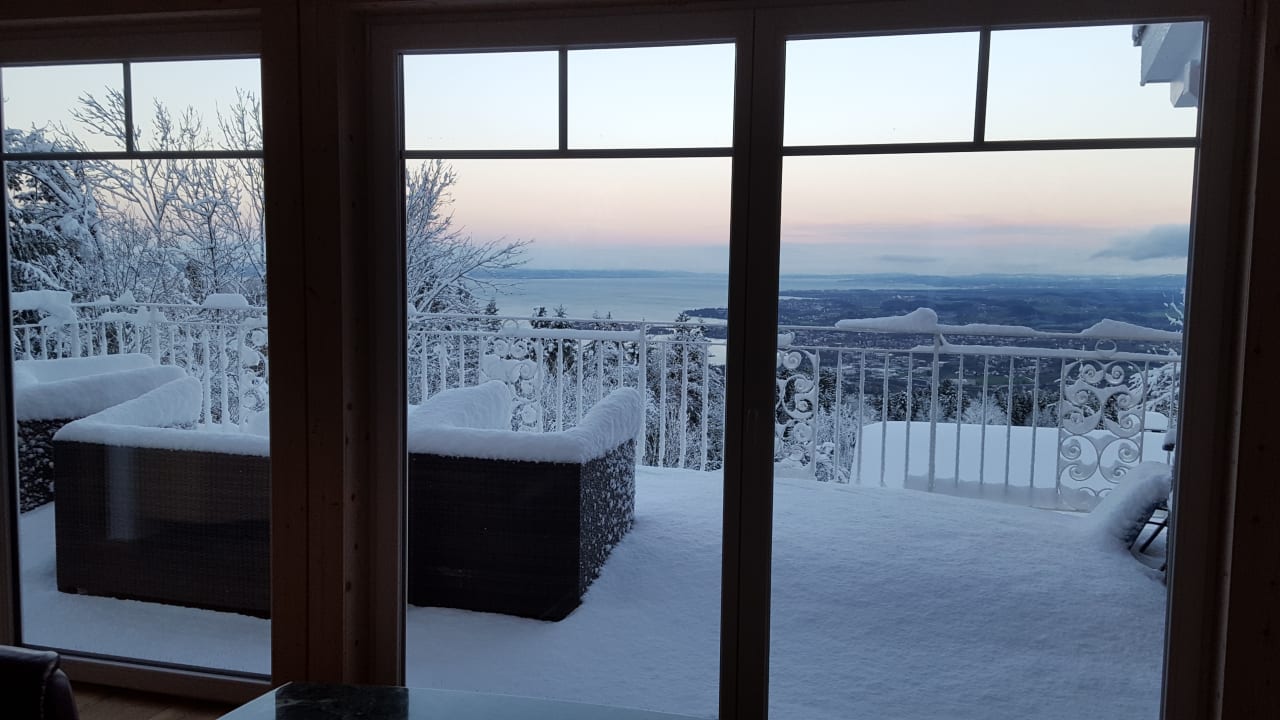 AusblickAussicht auf der großen Ferienwohnung im 2. Stock, Blick auf den Bodensee und Richtung Lindau