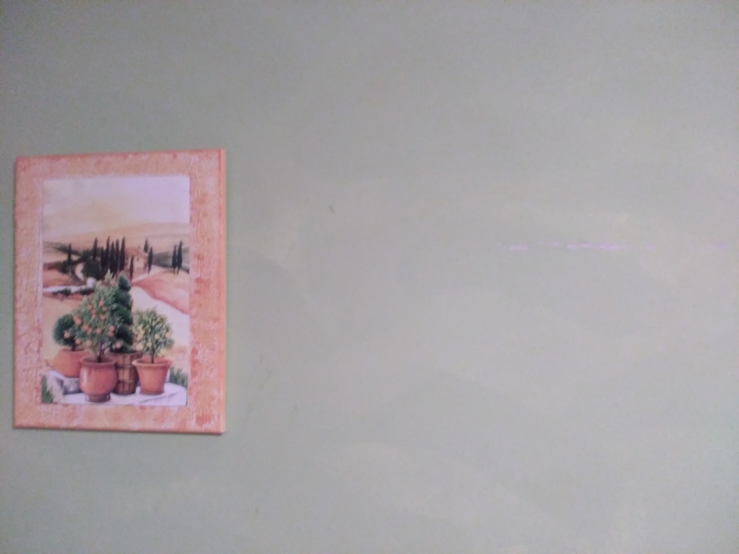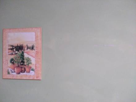 Wand night gestrichen, beschaedigt.