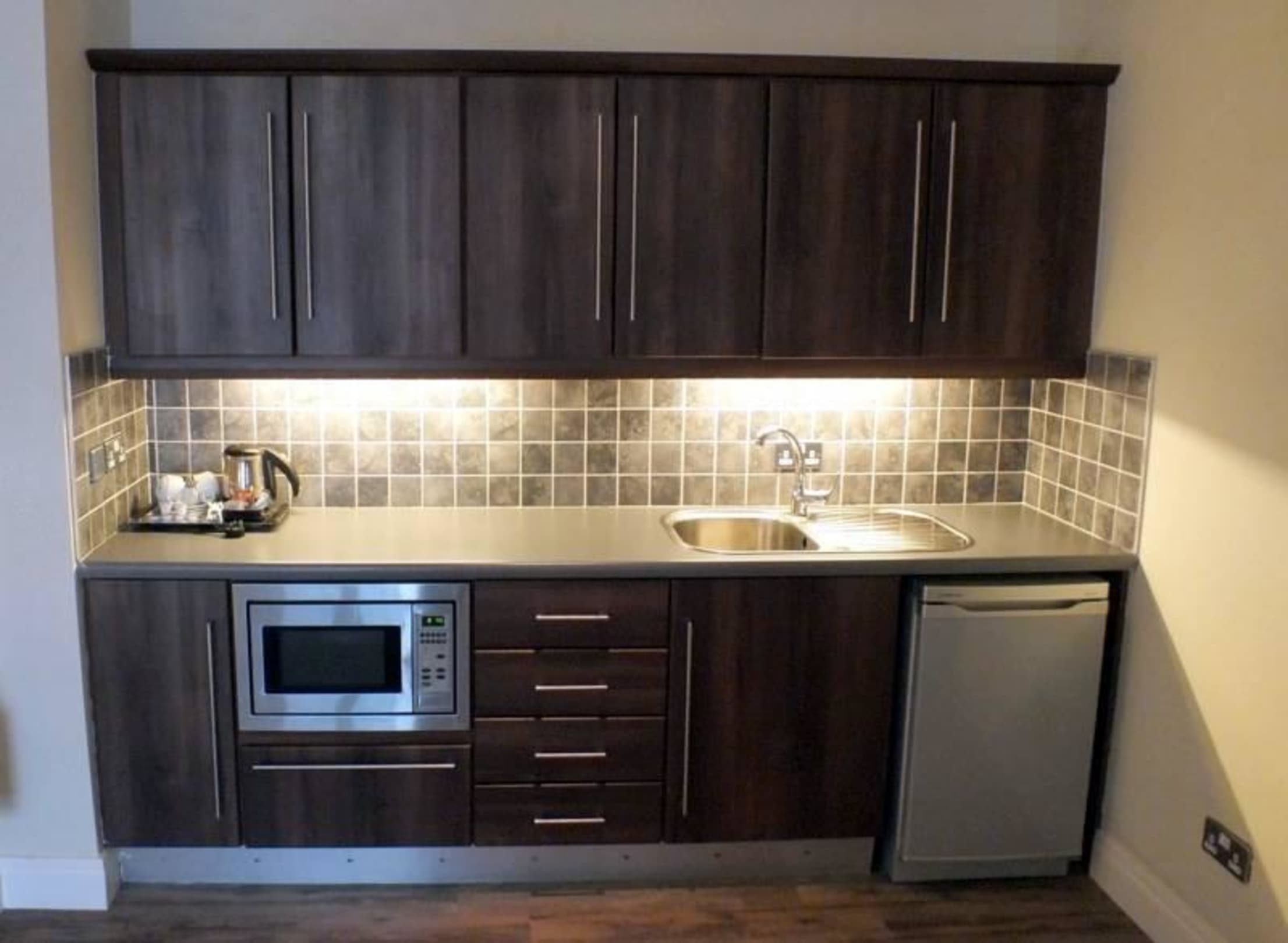 Küchenzeile im Dreibettzimmer