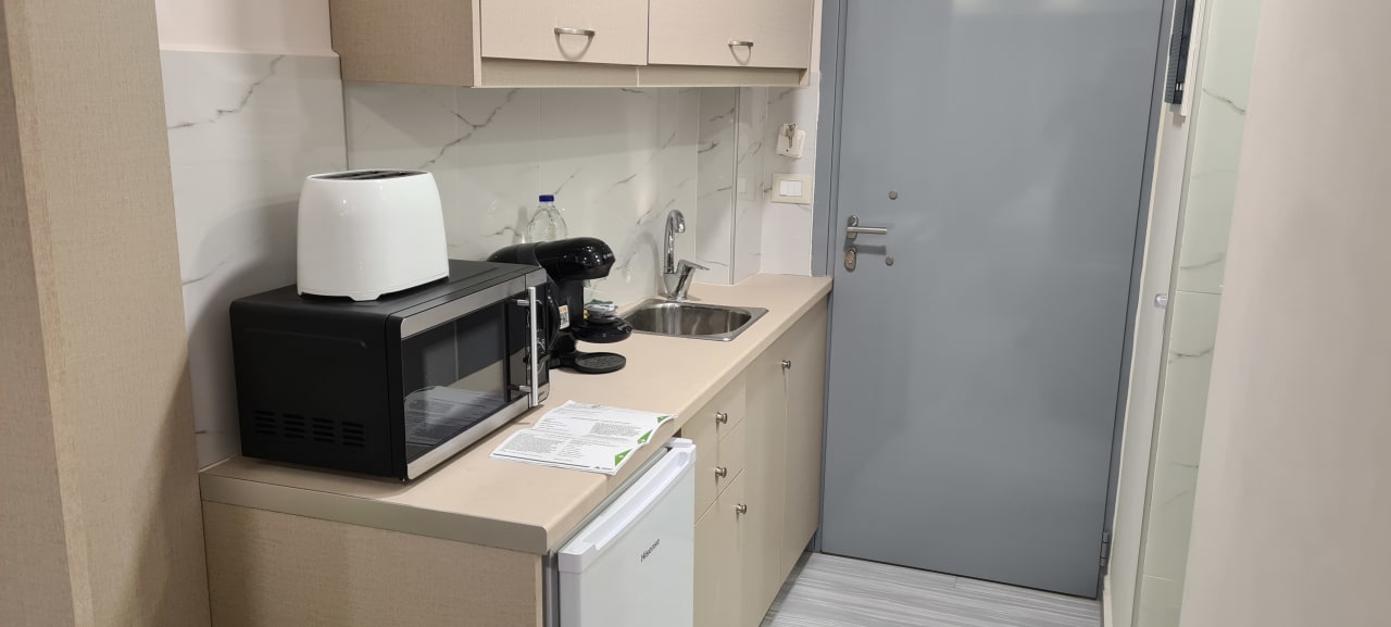 ZimmerDas Frühstück könnte man sich auch selber machen. Kaffeemaschine, Toaster, Mikro, Kühlschrank und Geschirr ist vorhanden