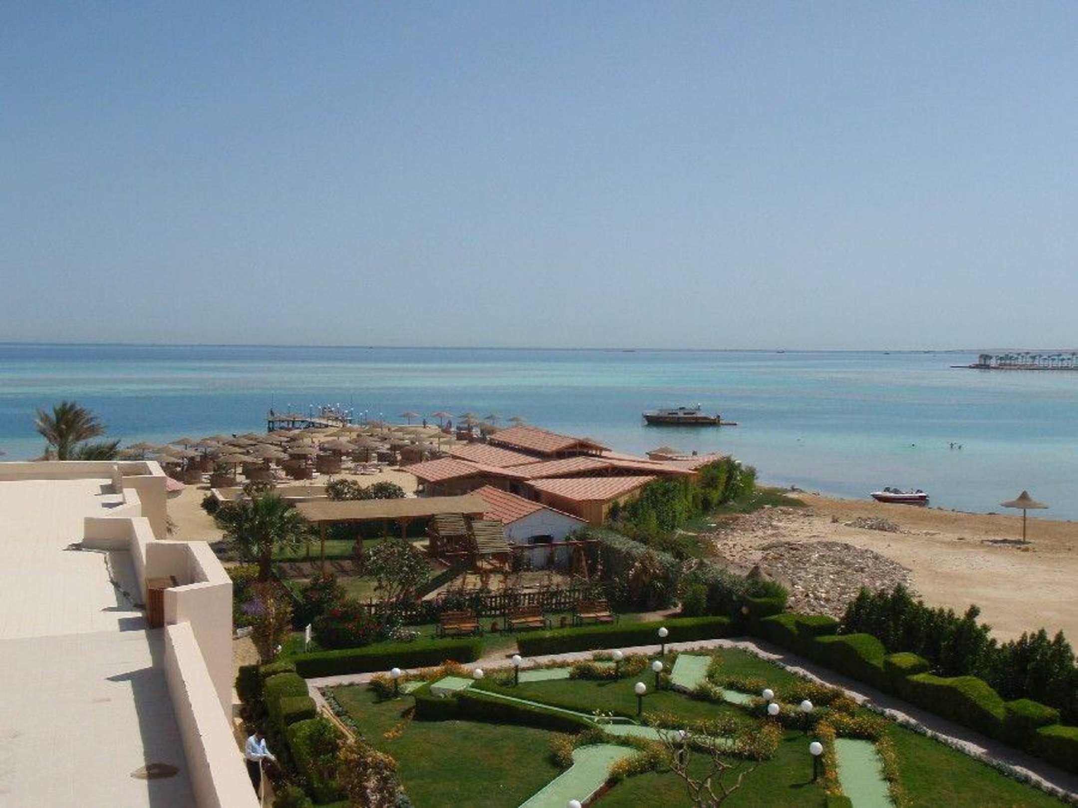 Aussicht auf Minigolfanlage, Kinderclub, Strand und Meer