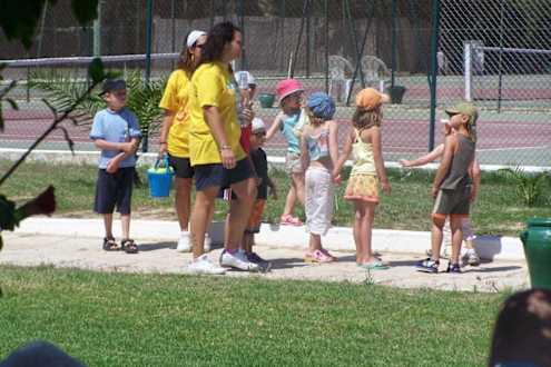 Die Kinder-Karawane zieht zum Tennis-Unterricht