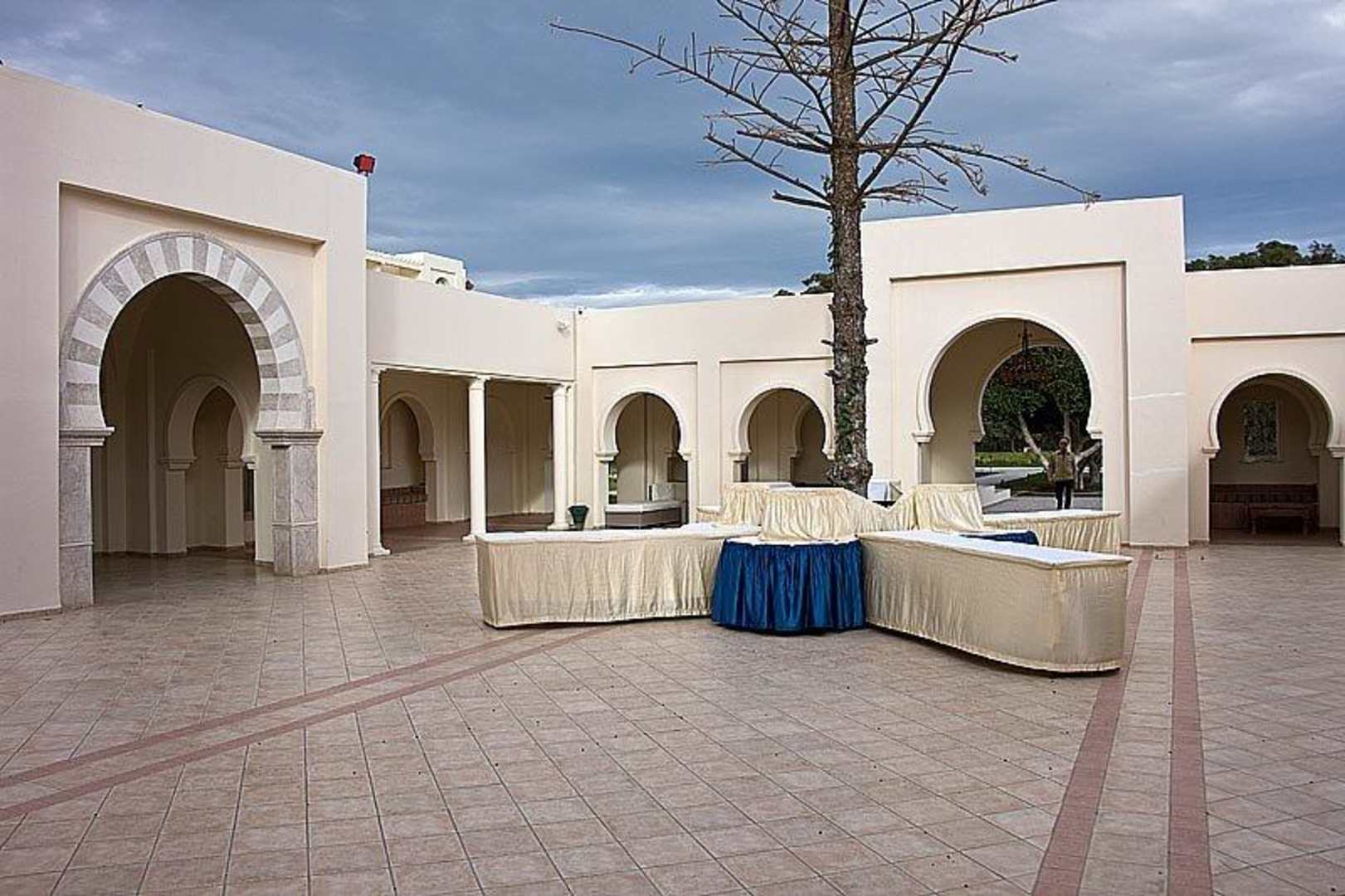 Links: Eingang zur Rezeption Rechts/Geradeaus: Ausgang zur Straße
