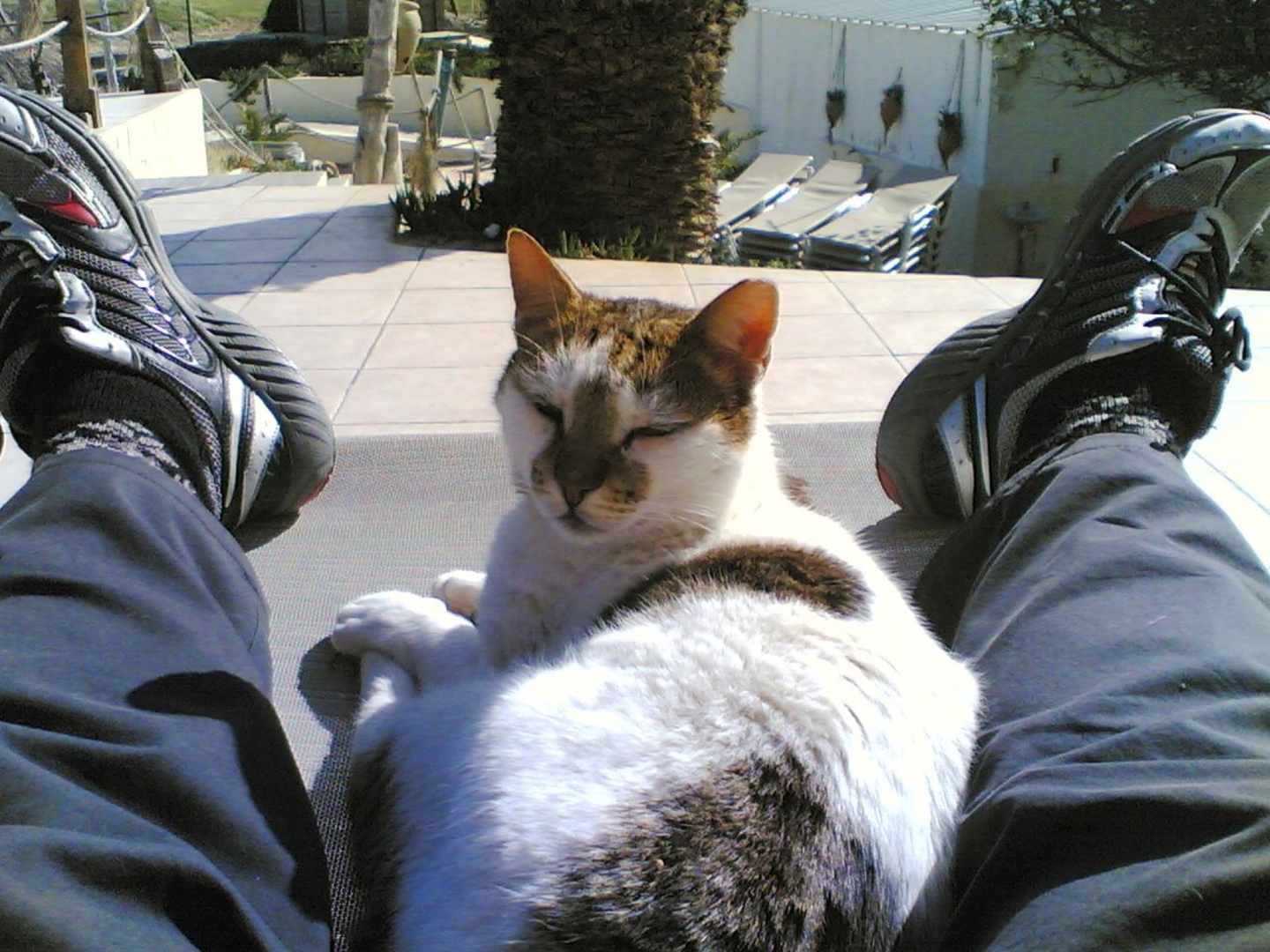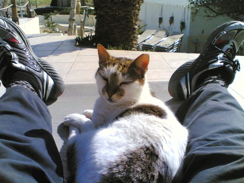 Mittagspause auf dem Strandbarhügel mit der Chefin der Hotelstrandkatzen.