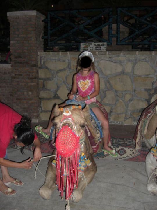 KamelreitenAn einem Abend unseres Aufenthaltes waren 2 Kamele sowie ein Basar am Pool. Den Kamelen sollte man nicht zu nah kommen, denn schwupp, schon sitzt man drauf und reitet wenige Meter und darf dann dafür 7.50 Euro zahlen. Naja, aber Spaß gemacht hat es trotzdem.