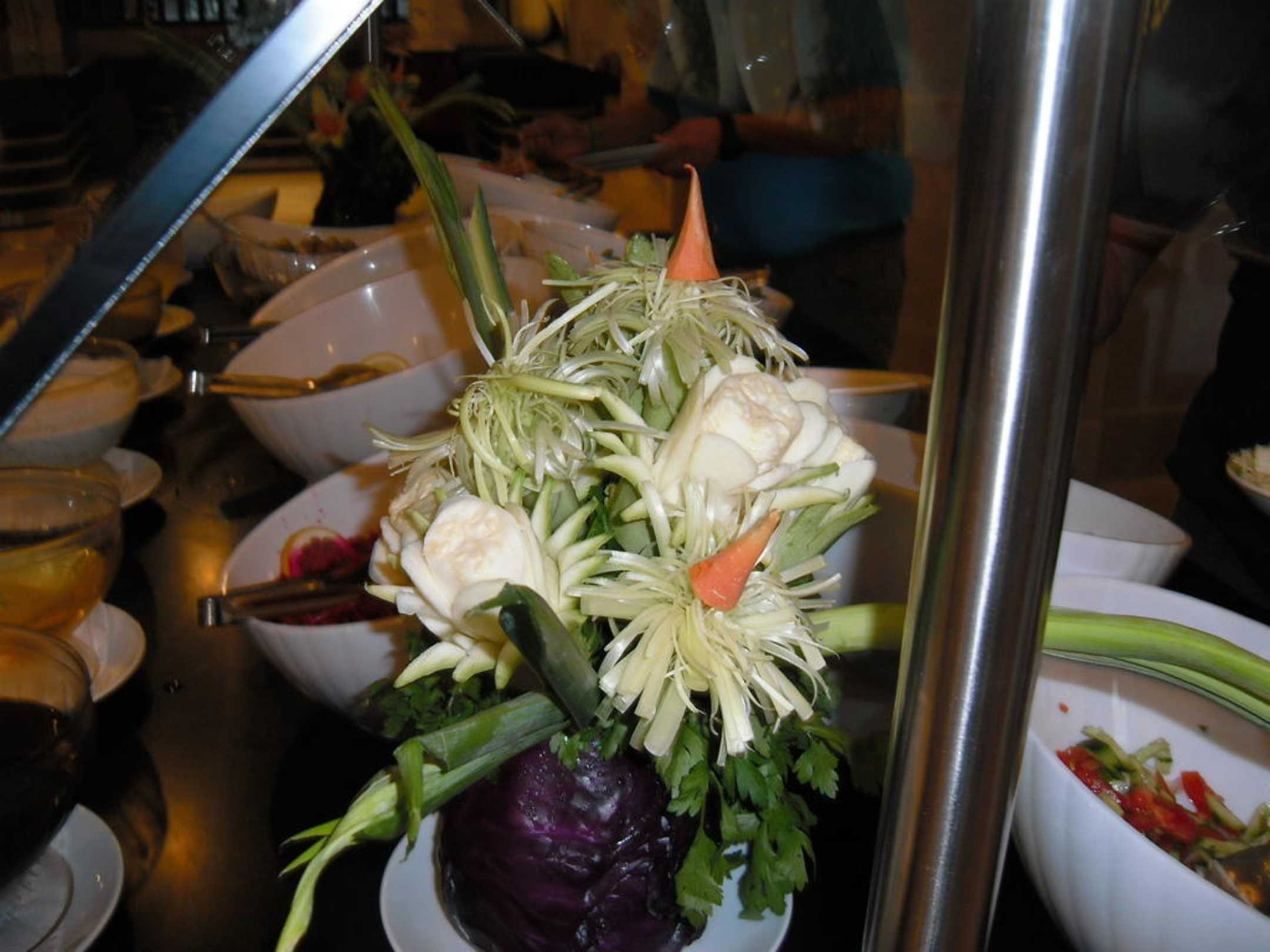 Aus Früchten geschitzte Blumen