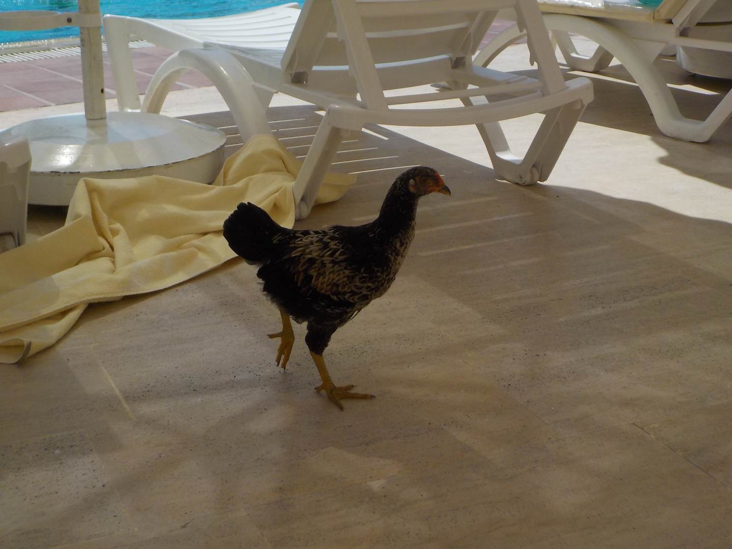 Leider sind die Hühner an dem Pool und haben immer auf den weg gekackt.