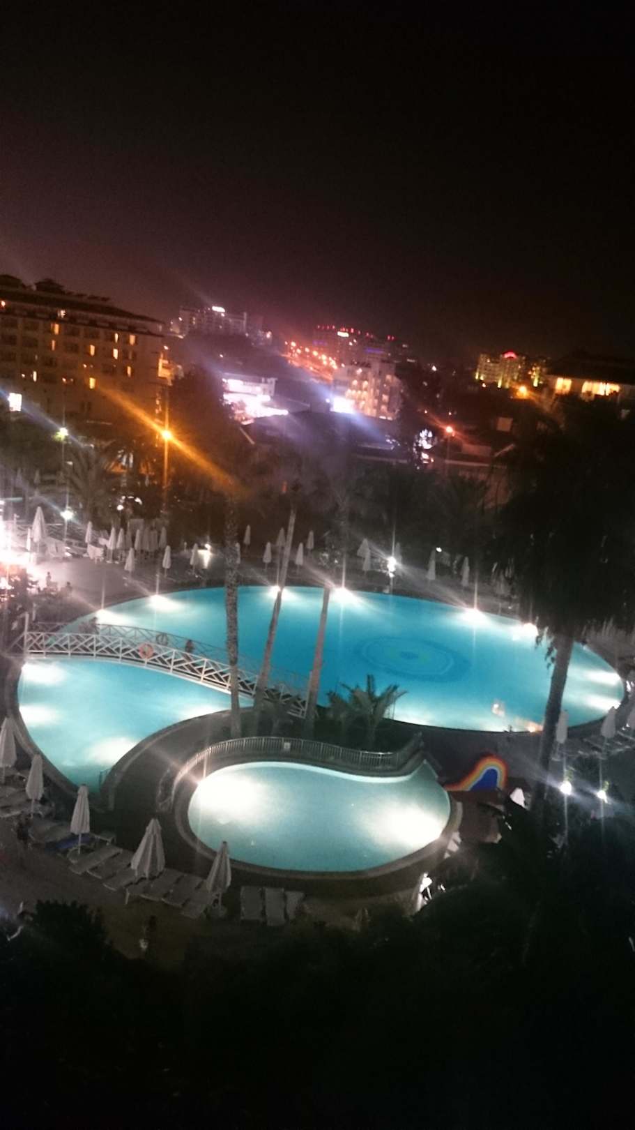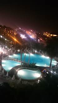 Blick vom Zimmer auf den Pool