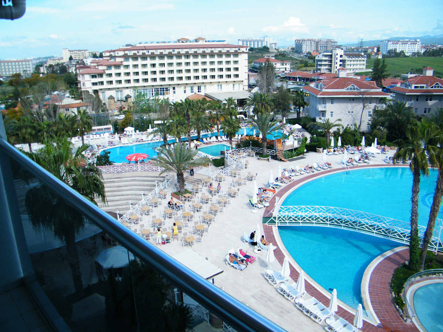 Blick vom Zimmer auf den Pool