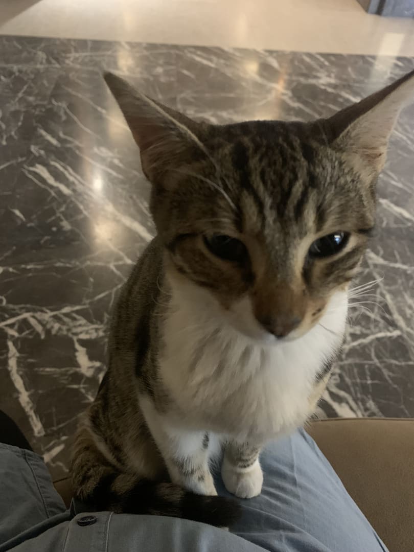 Die Katzen fühlen sich sichtlich auf meinem Schoß und im Hotel wohl😀
