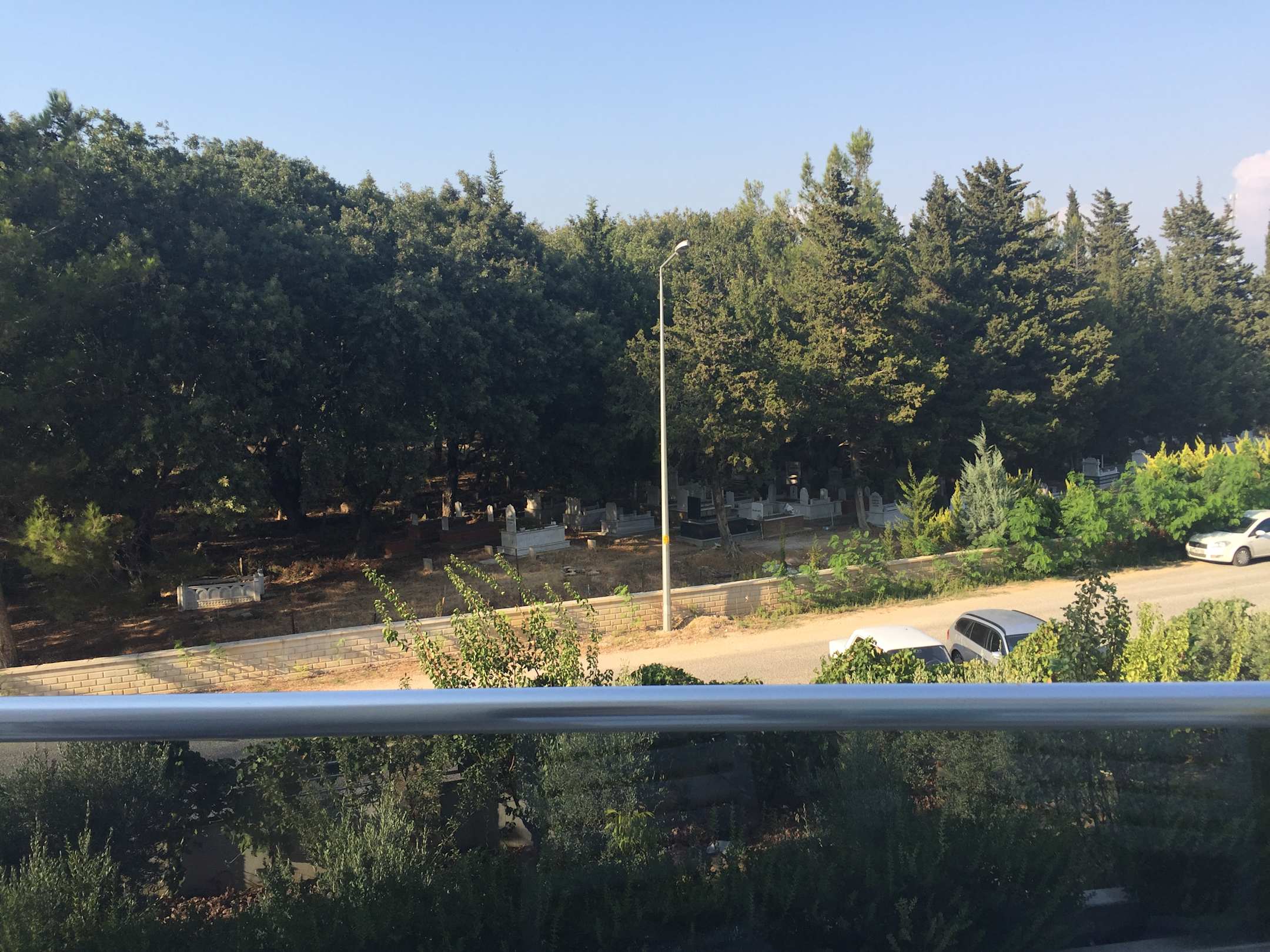 Aussicht Landesseite mit Blick auf dem Friedhof vom Balkon