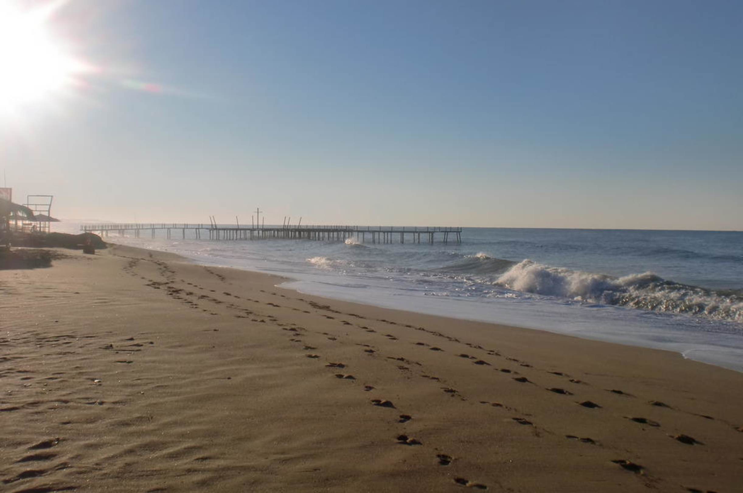 Am StrandHier stehen Liegen und Sonnenschutz kostenlos zur Verfügung. Der Strand ist leicht kieselig.