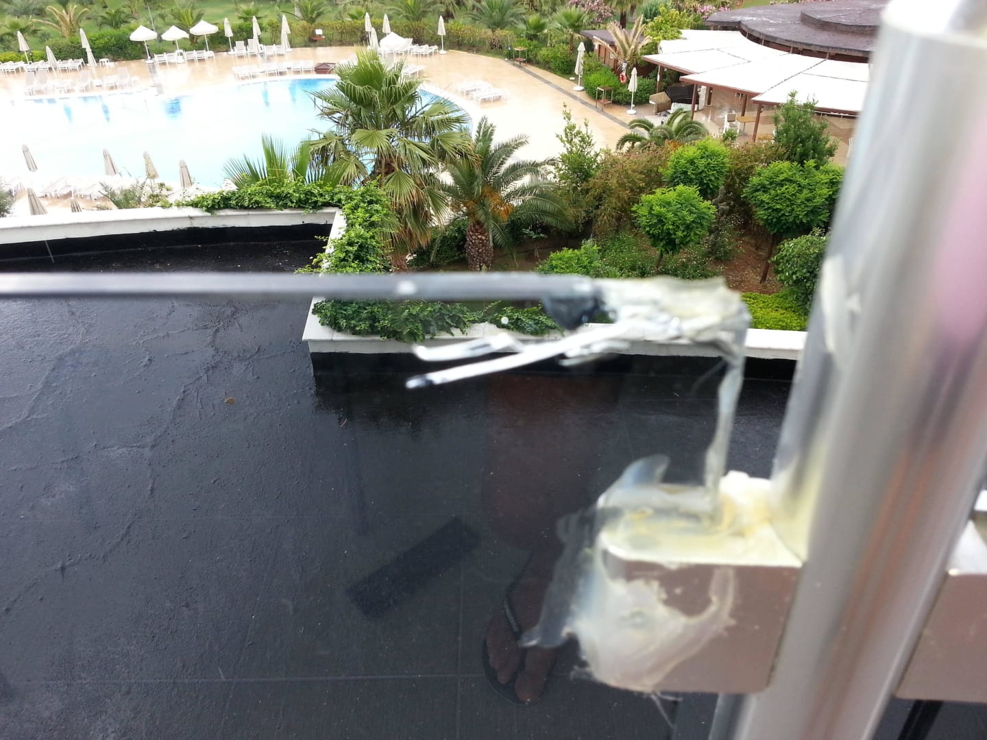 Kaputte Scheibe am Balkon Familienzimmer 3203