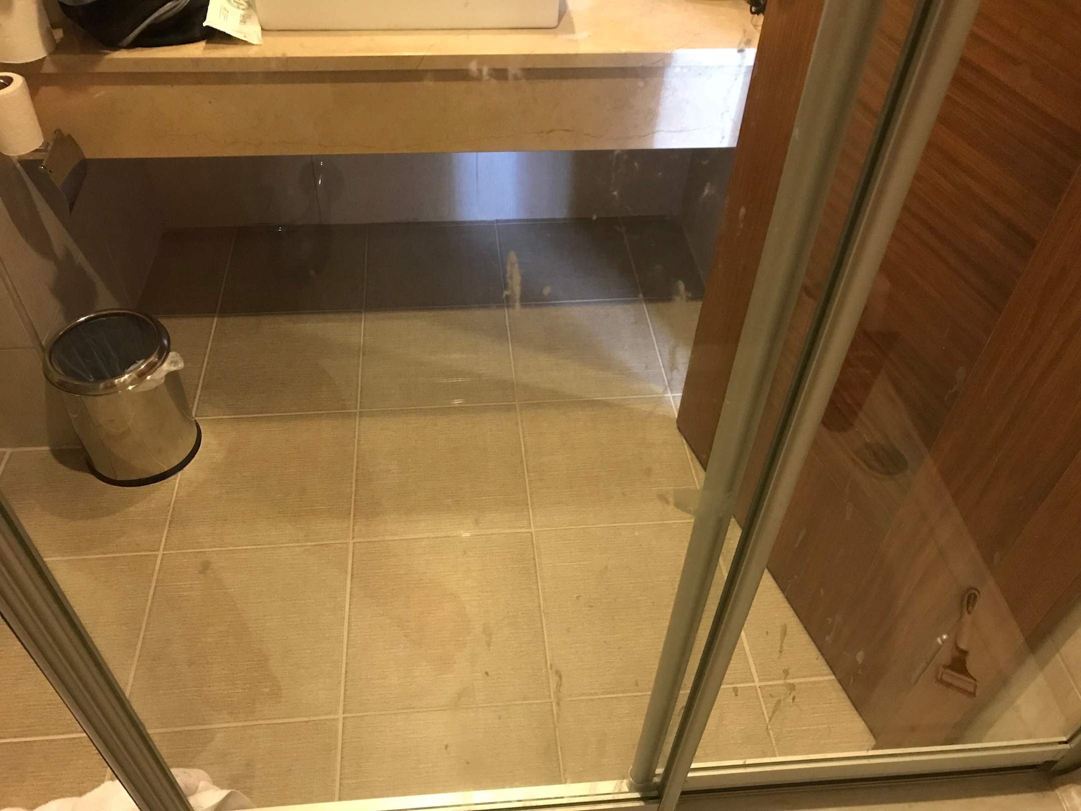 Seifenflecken an der Duschwand von den vorherigen Gästen