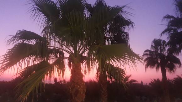 Ausblick Sonnenuntergang von Terrasse beim abendessen