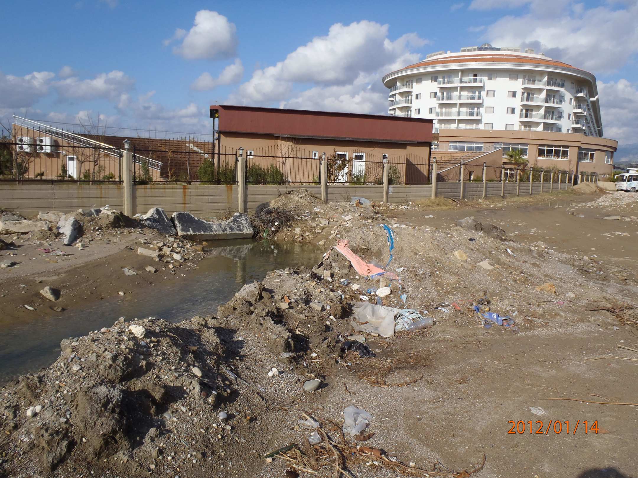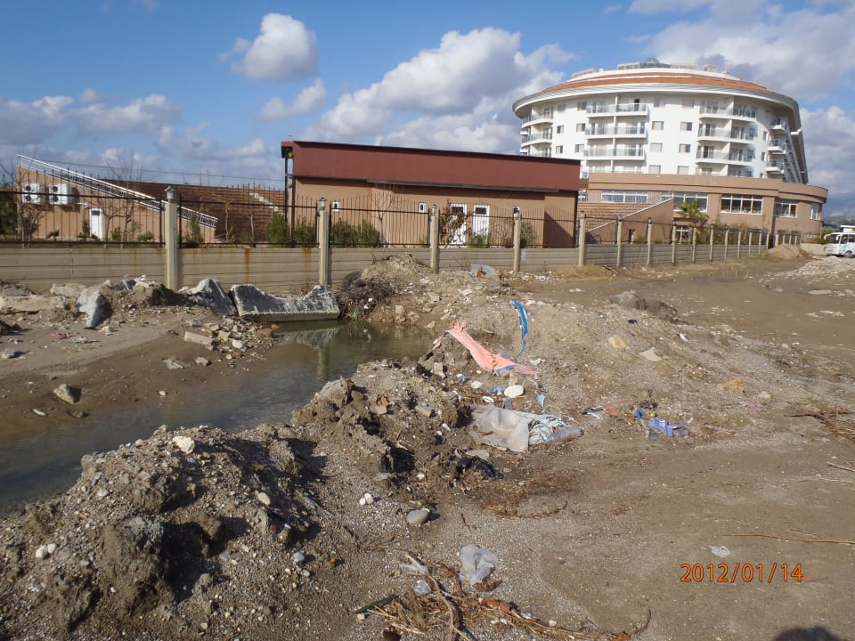 Blick aus den Familienzimmern / Lyraseitevermülltes Brachland als Aussicht