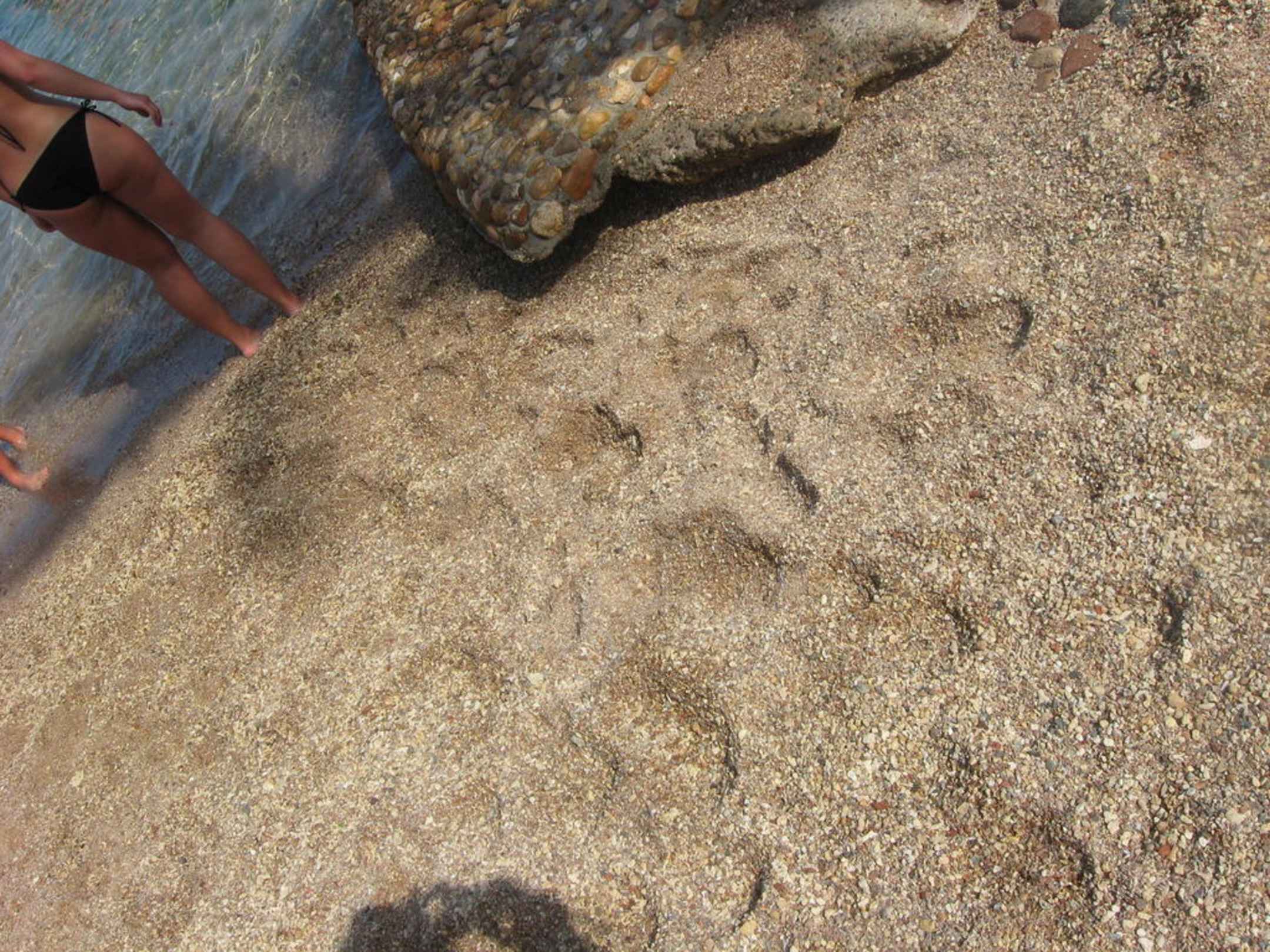 Písek na pláži je opravdu hrubý