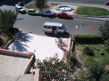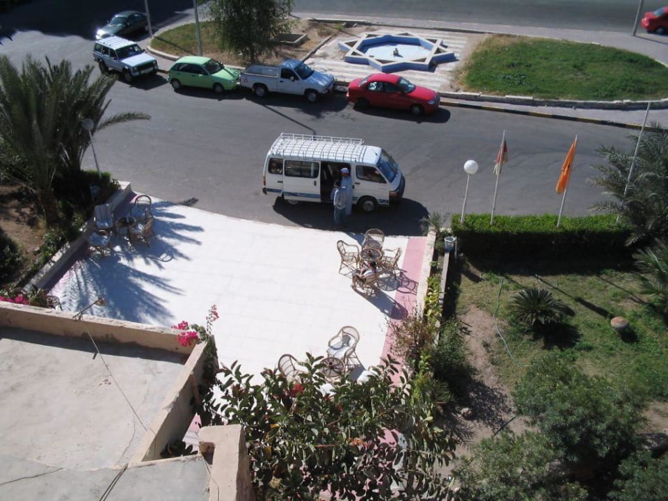 Blick vom Hoteldach auf den Eingang