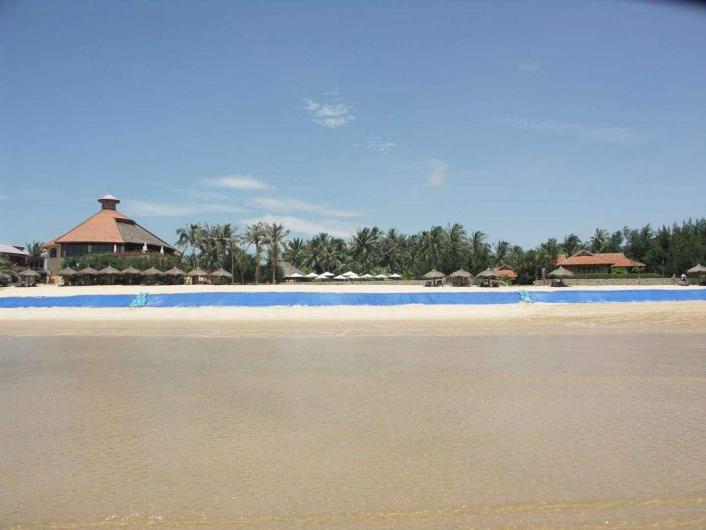Anblick Seahorse vom Meer bei EbbeDeutlisch zu erkennen sind die Küstenbefestigungen mittels Plastikplanen