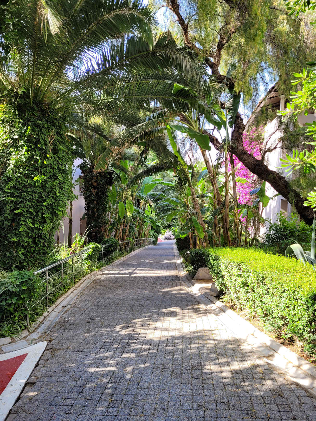 Weg vom Eingang zu den wohnblöcken, Pool und und Strand
