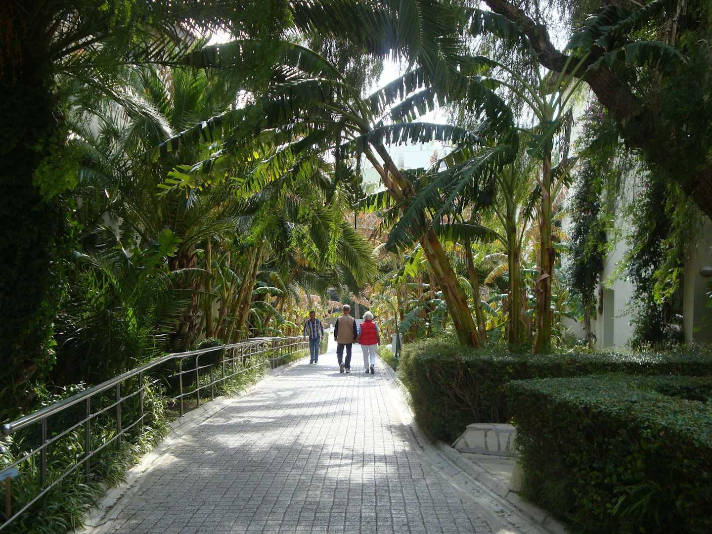 Bananenstauden-Allee von der Rezeption zum Strand